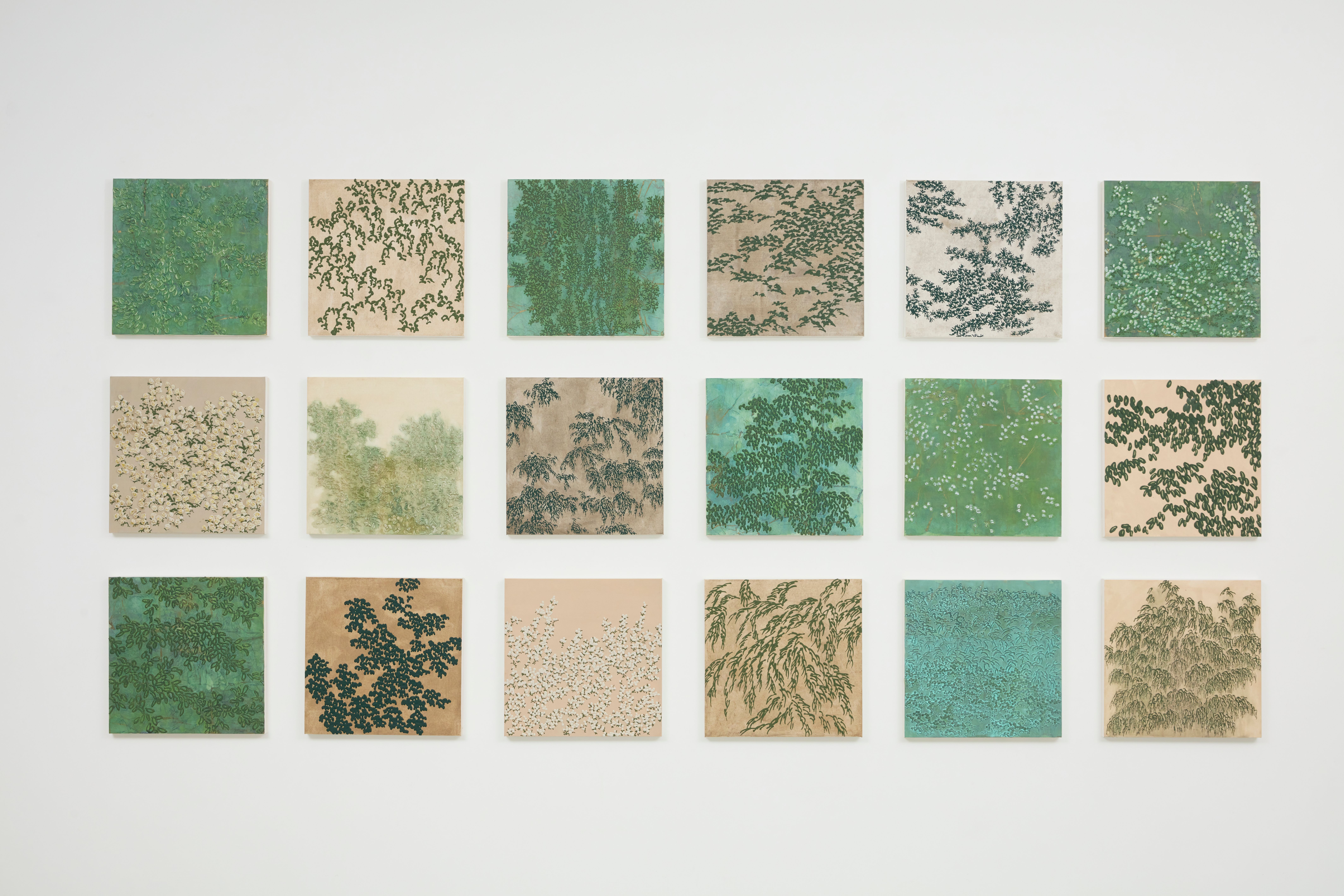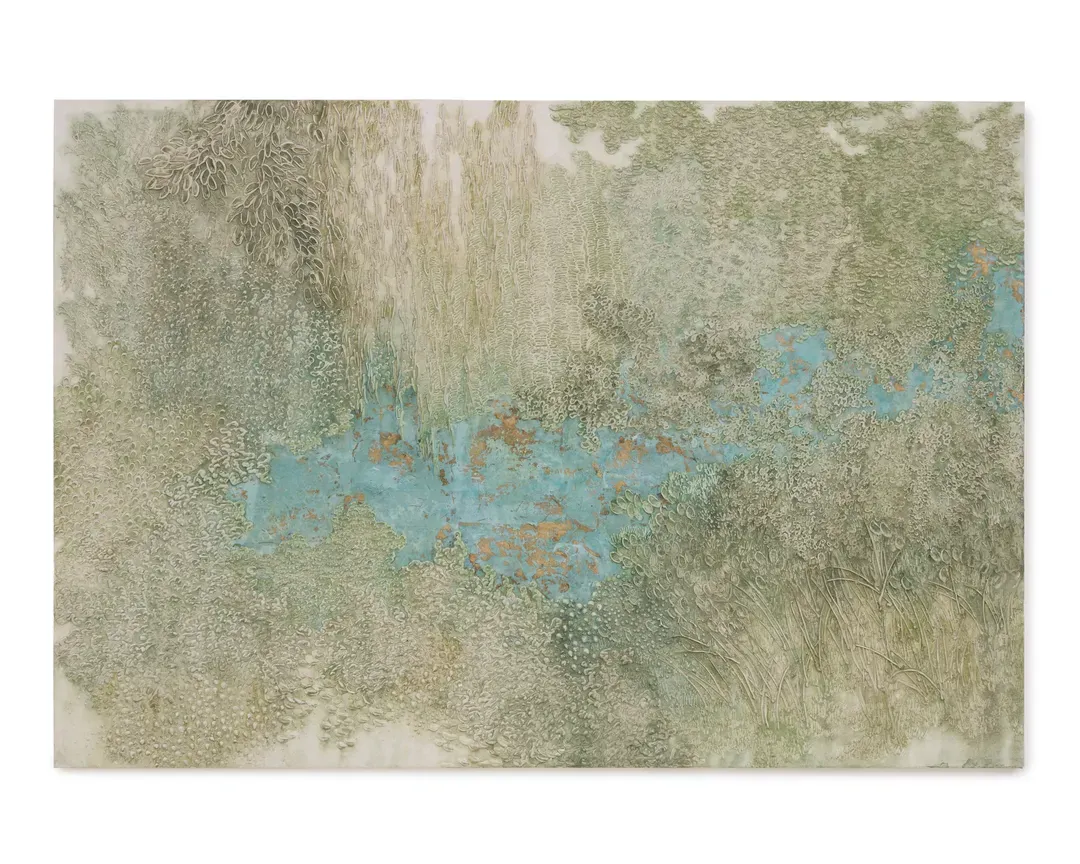 장지에 동 부식, 나뭇재, 흙, 자연적 안료, 체질안료