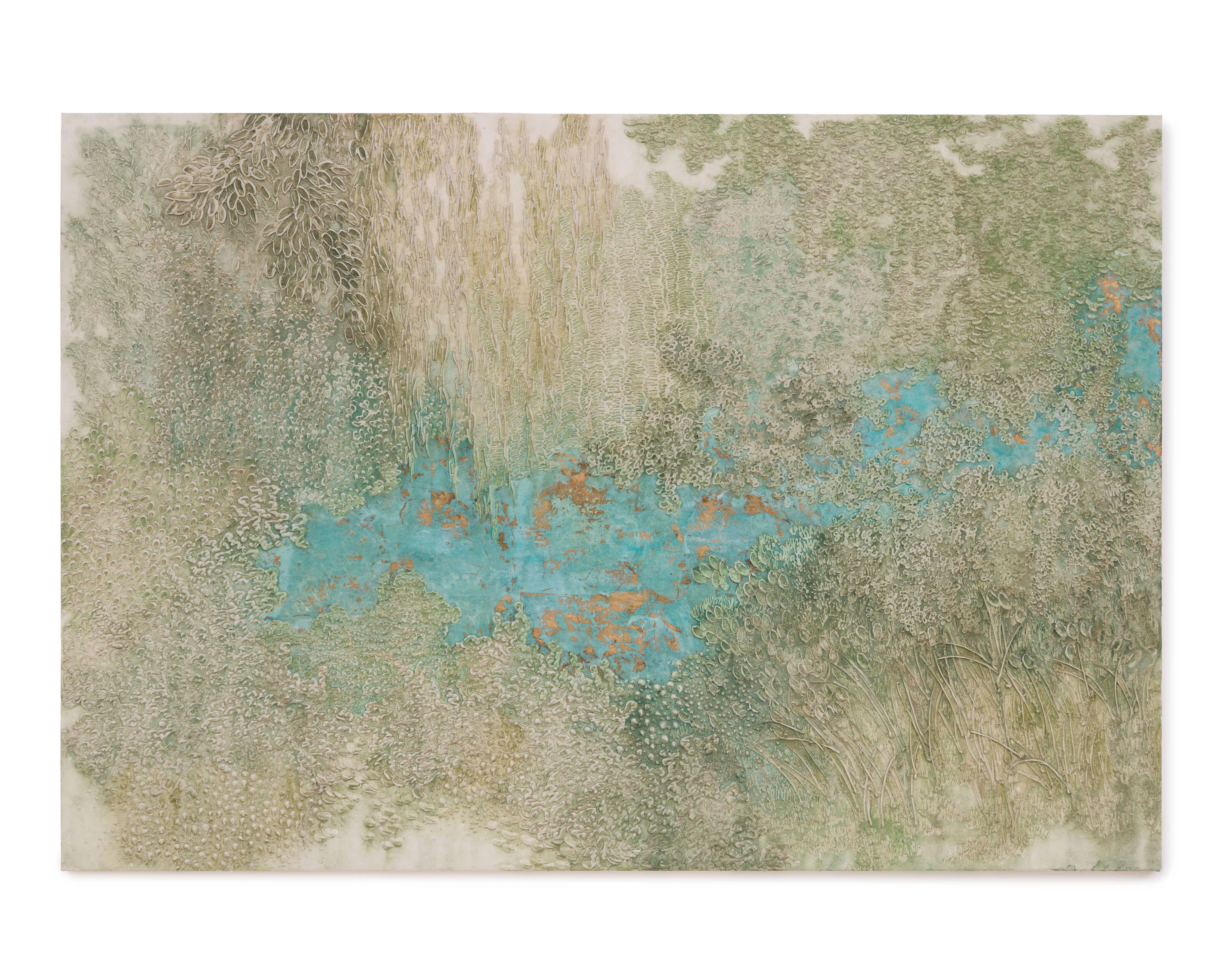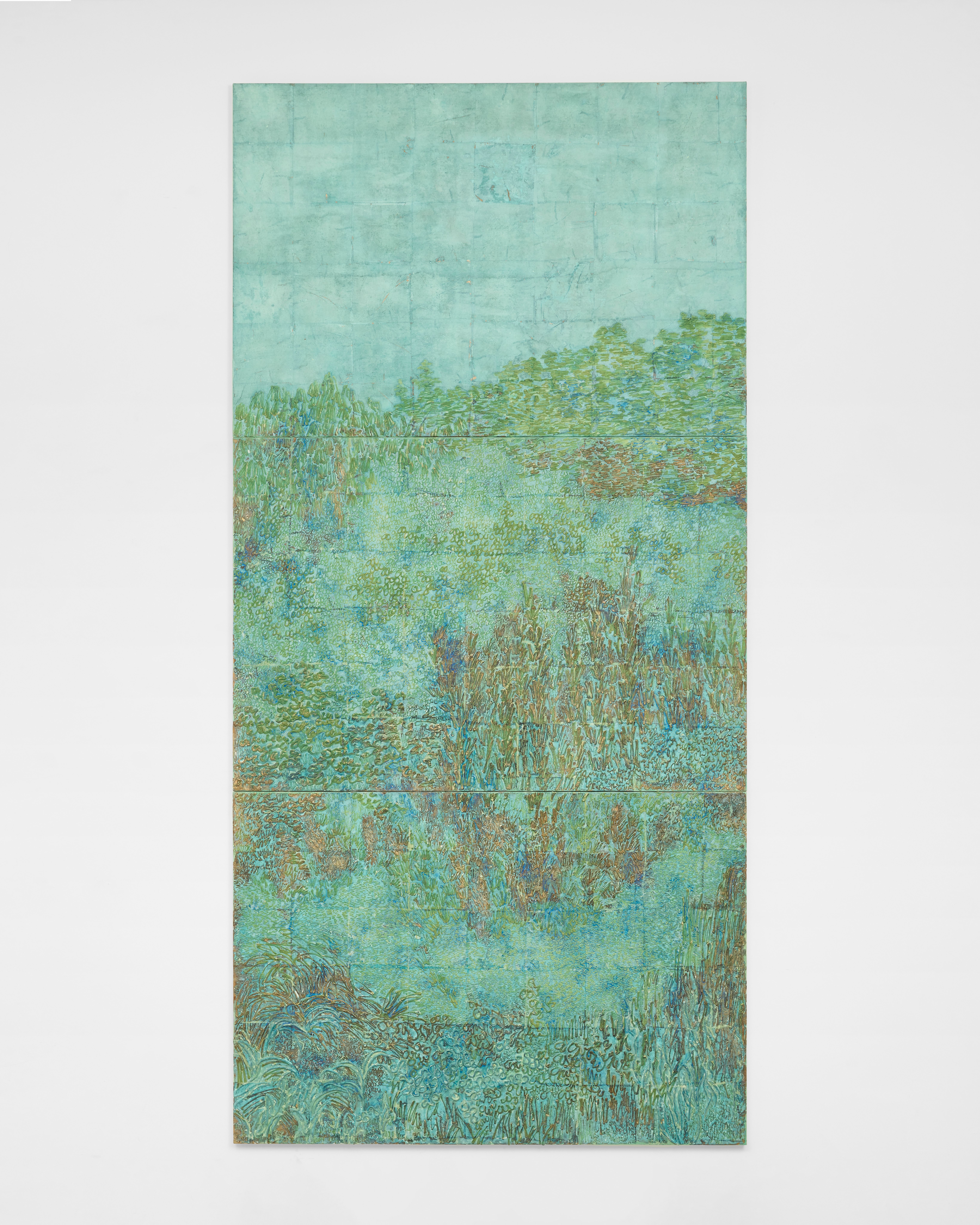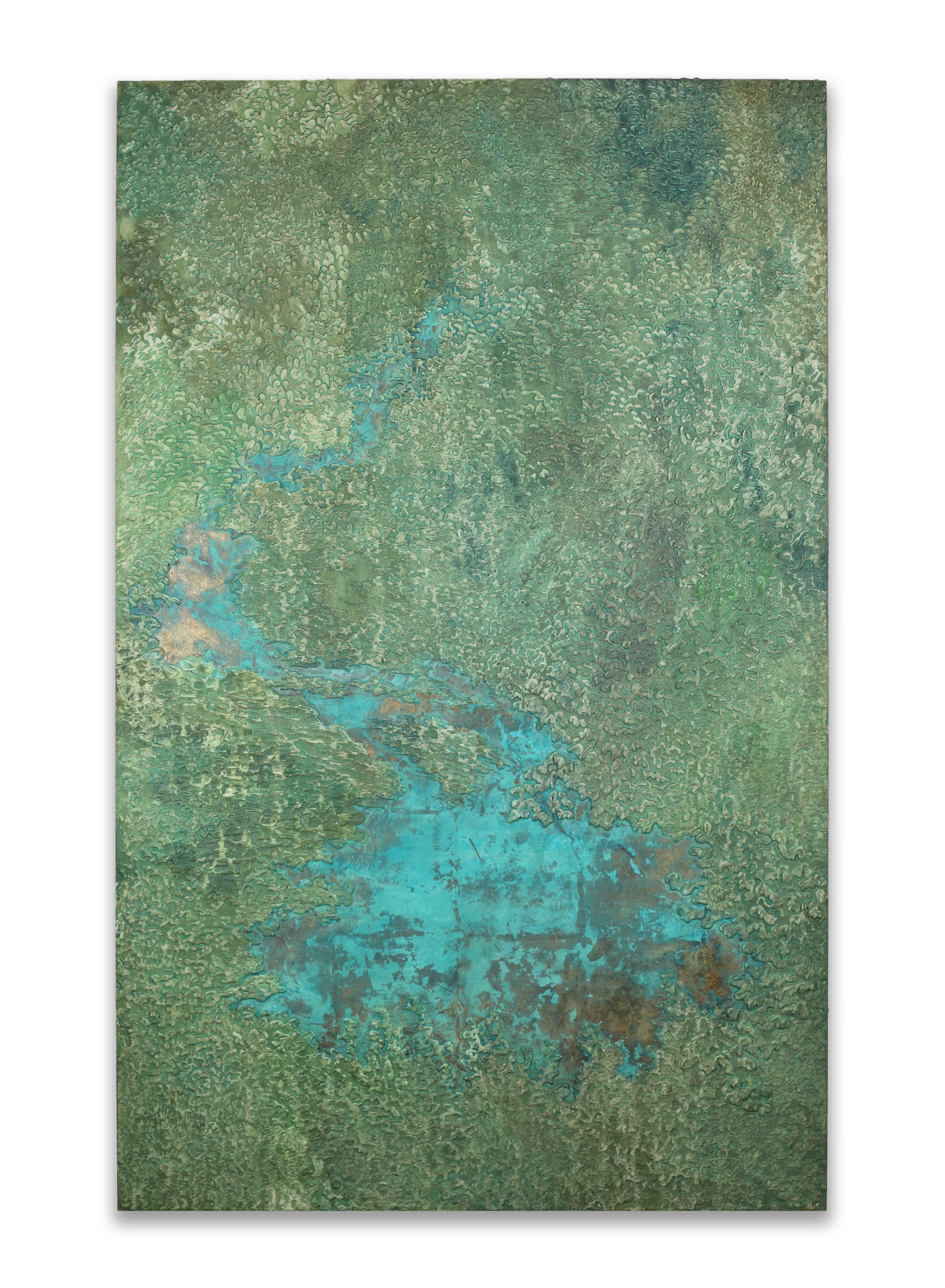 장지에 동 부식, 나뭇재, 광물안료, 체질안료