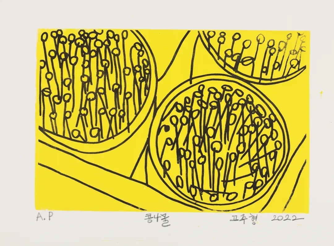 고주형은 자신에게 특별한 인상으로 각인된 이미지와 사진들을 골라 여러 크기로 크롭한 후 반복적으로 그리는 것을 즐긴다. 또한 대상의 특징을 집약하여 단순화시켜 기록하기도 한다. 작가는 자신을 둘러싼 자연의 모습과 시장에서 관찰한 다양한 먹거리의 특징을 단지 몇 개의 선만을 사용하여 감각적으로 표현하는 판화 작업을 진행한다. 주요 전시로는 <우리가 기억한다 기록한다>(군포문화예술회관, 2022), <길은 너무나 길고 종이는 조그맣기 때문에>(서울시립 북서울미술관, 2021) 등이 있다.