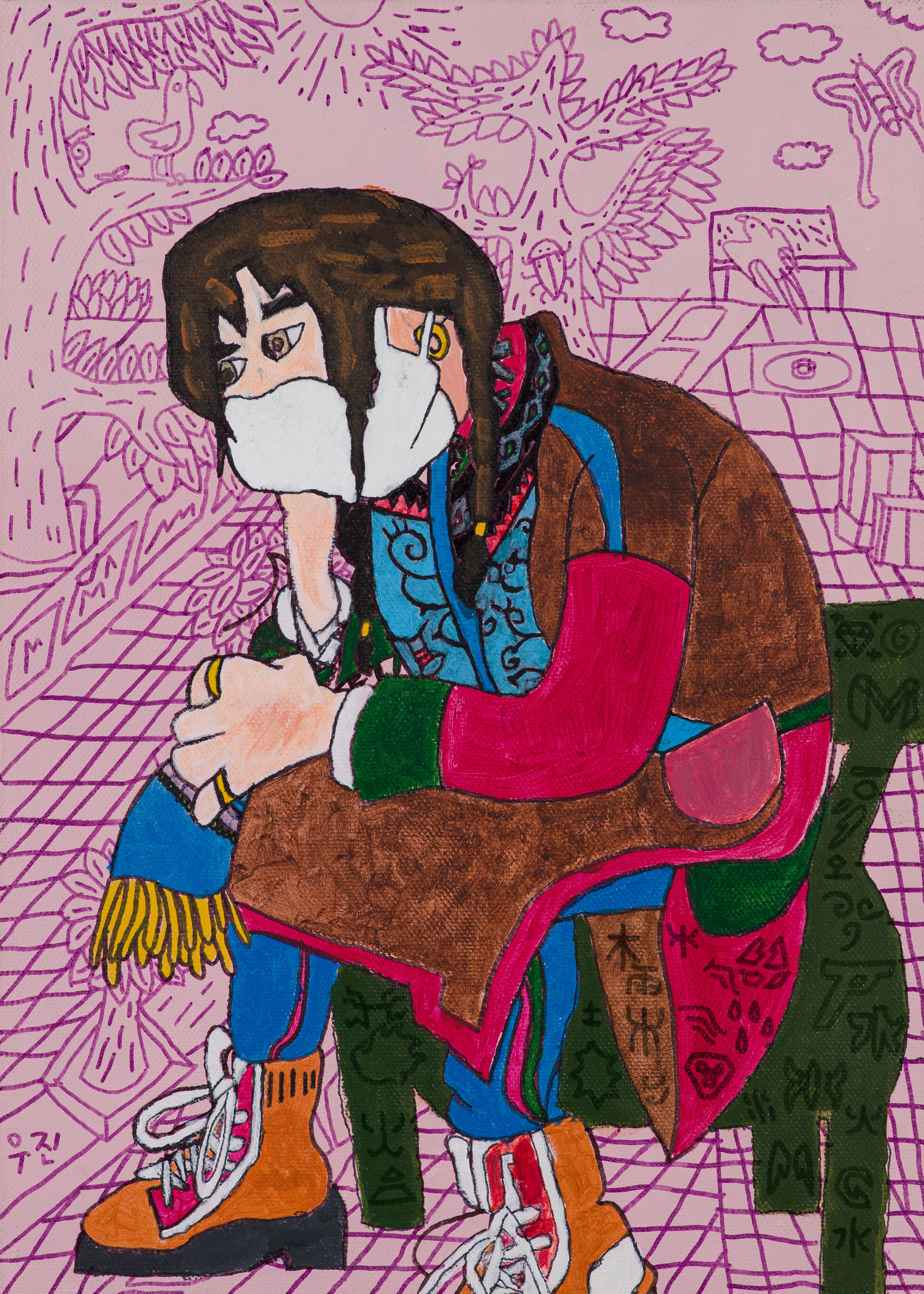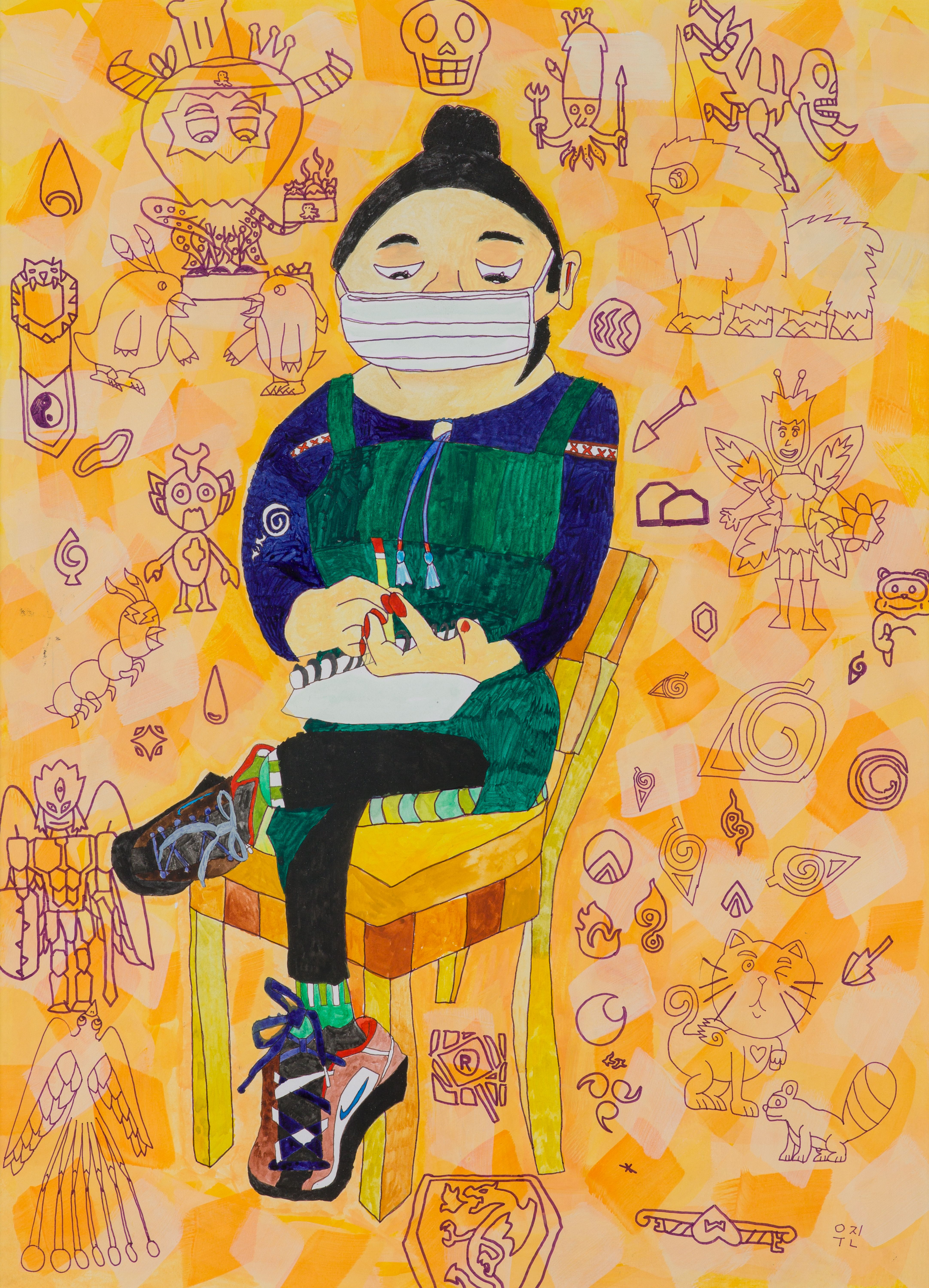 종이에 수채, 싸인펜