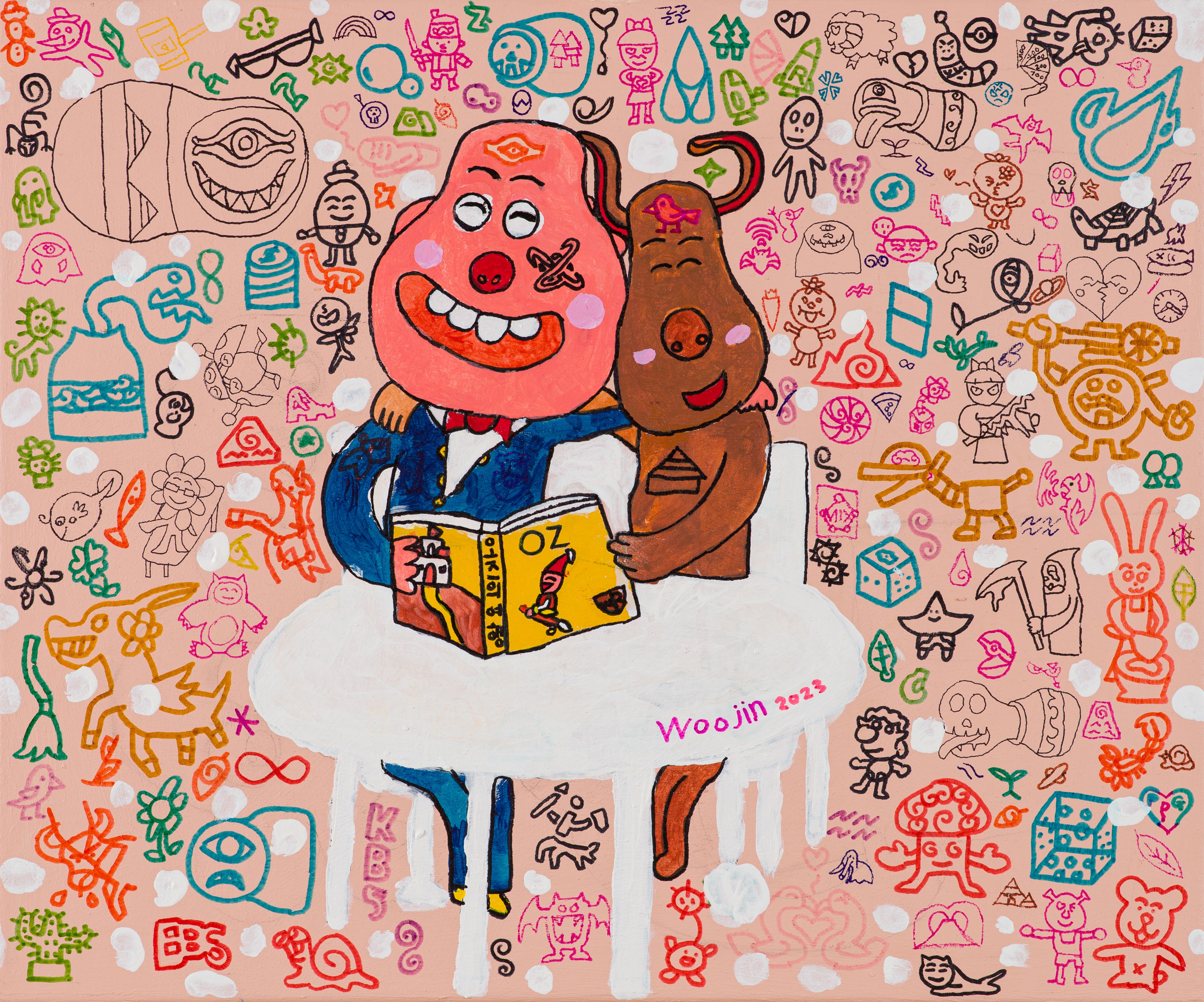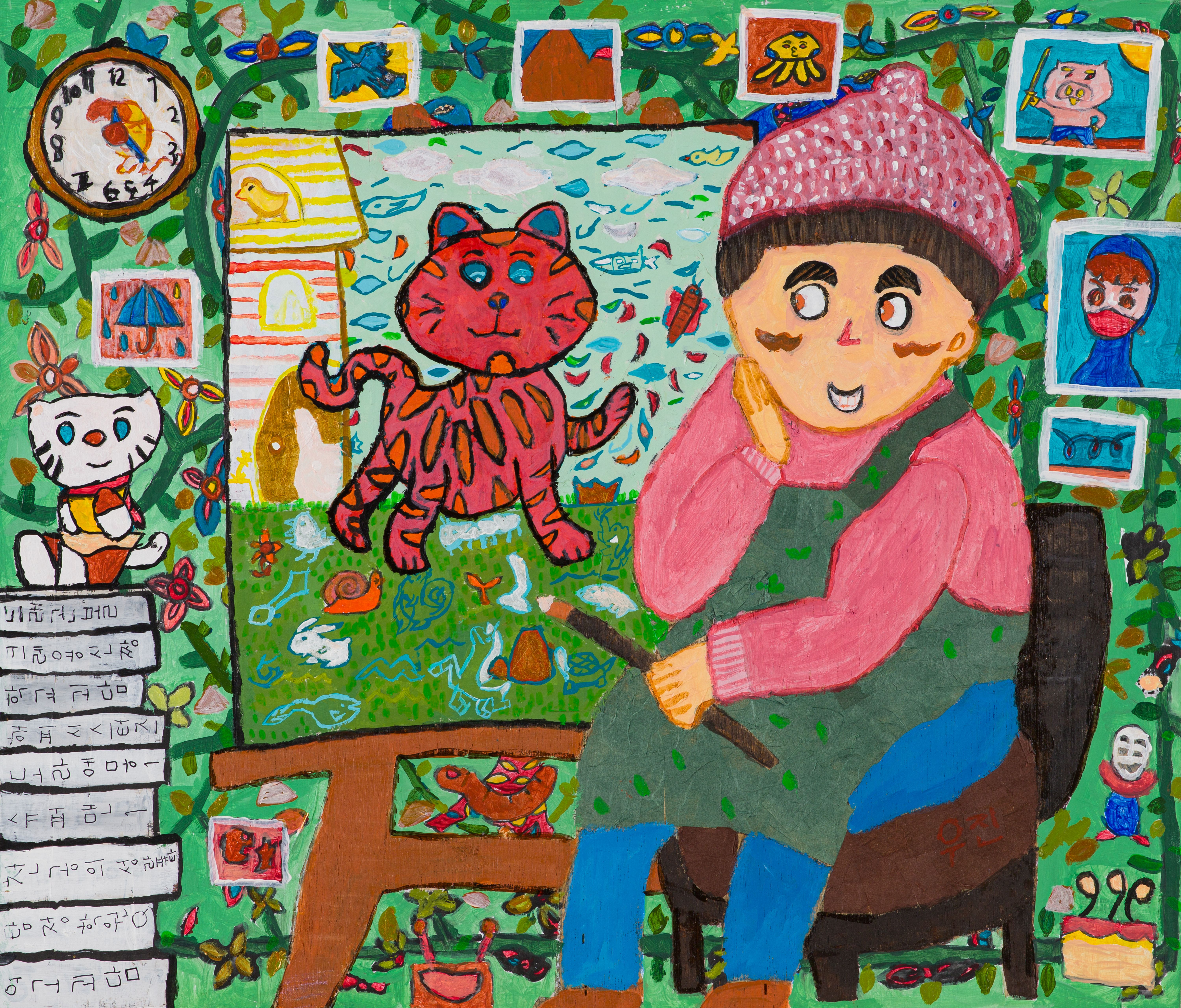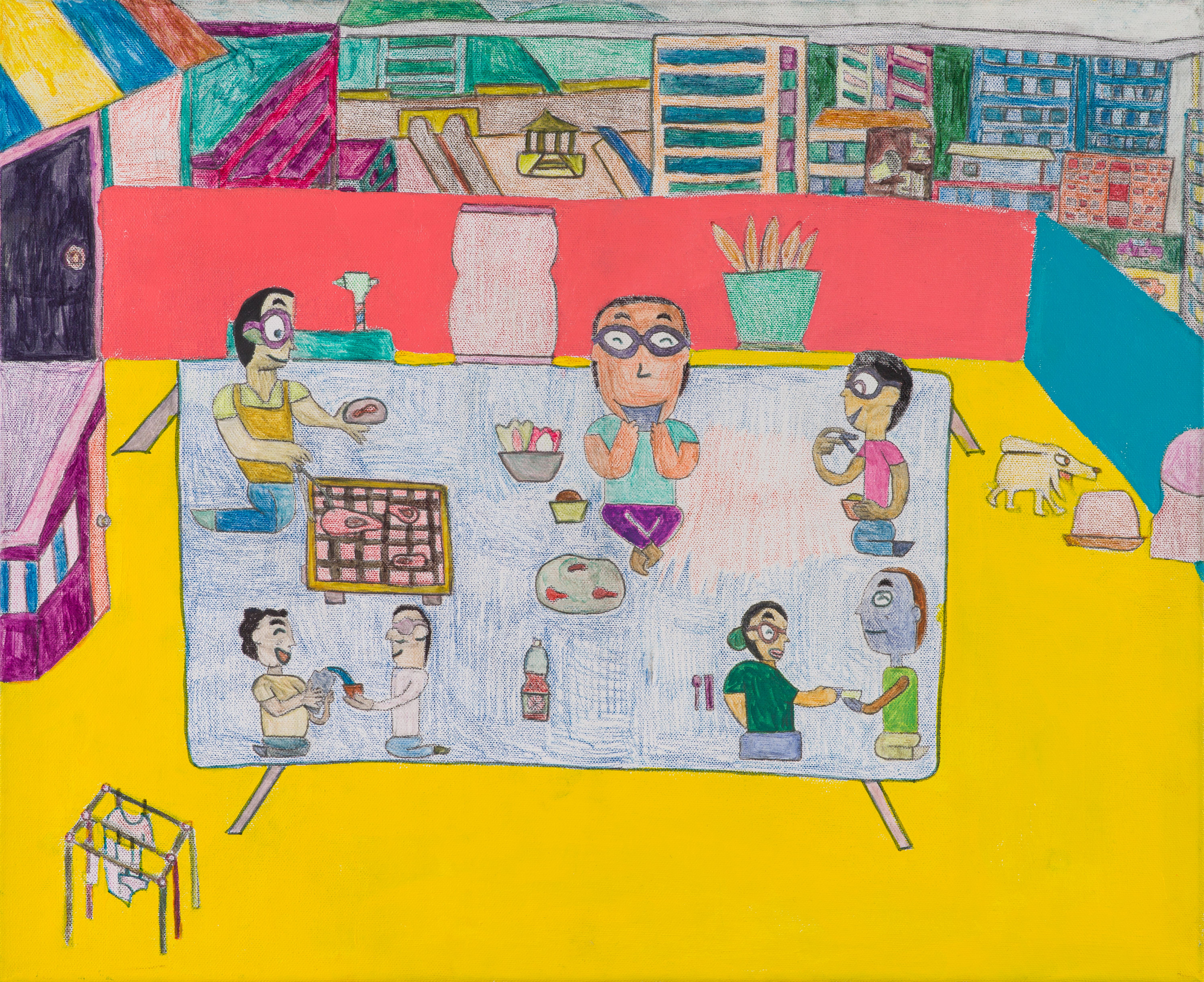 캔버스에 아크릴, 색연필