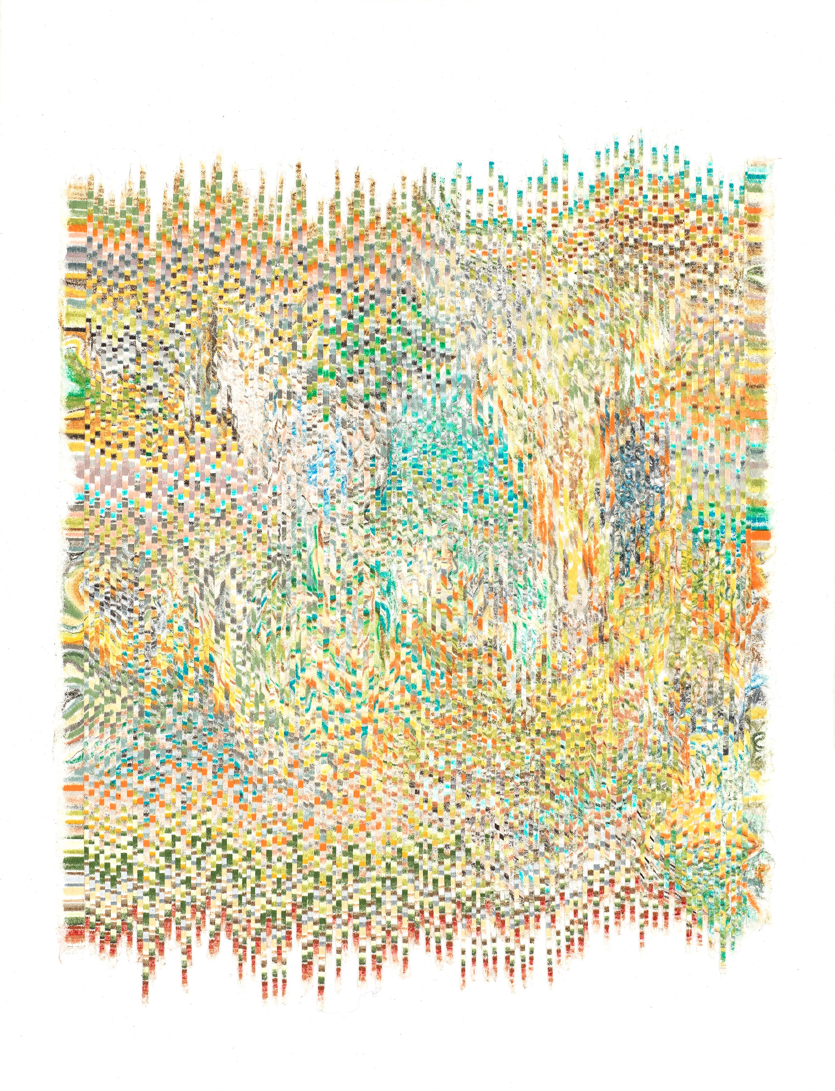 종이 위에 색연필, 콜라쥬, 폐기된 기록물