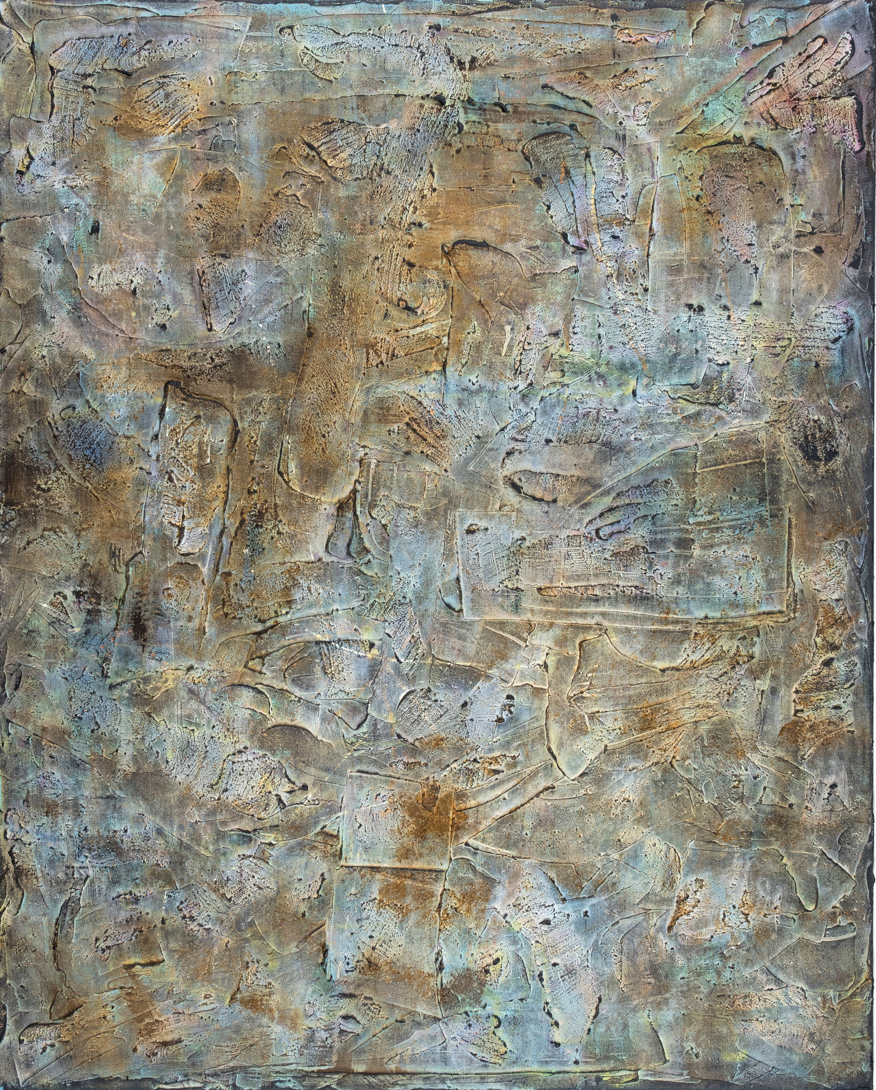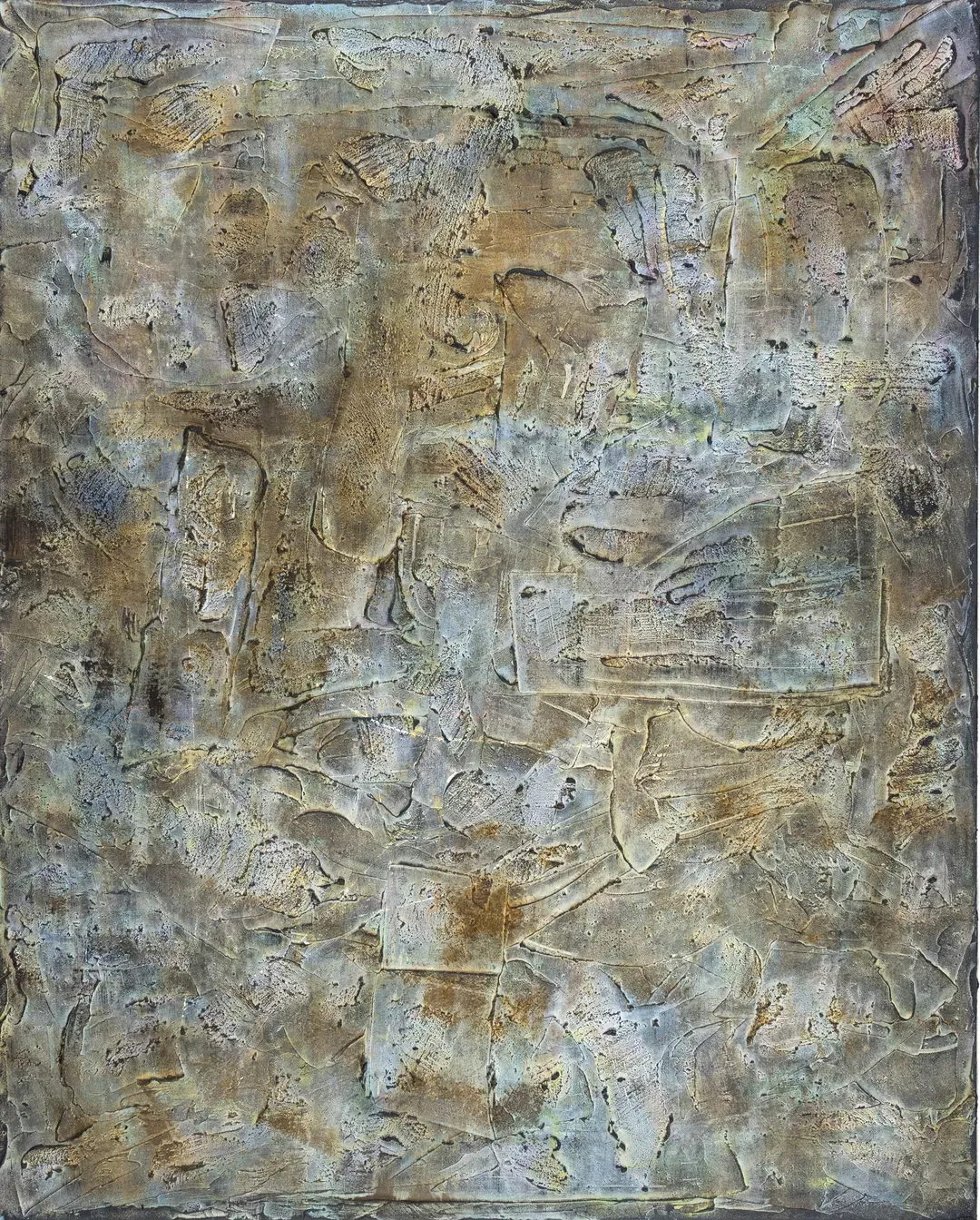 패널에 시멘트와 먹, 조색제, 아크릴, 크레파스, 블랙 젯소