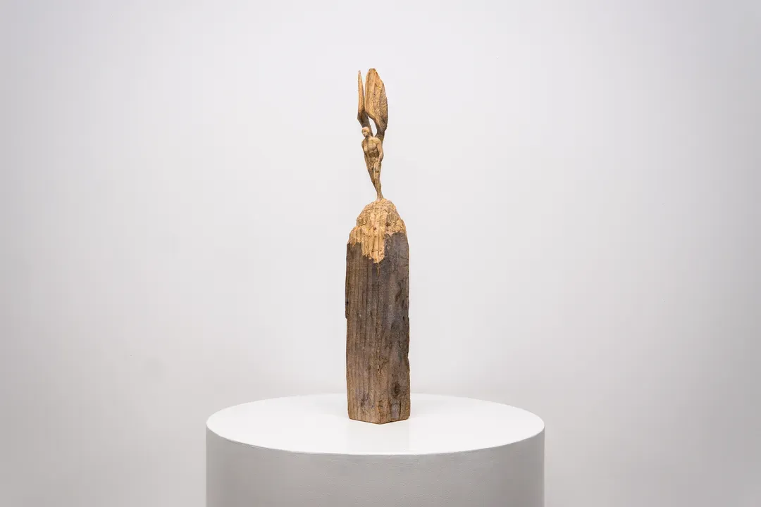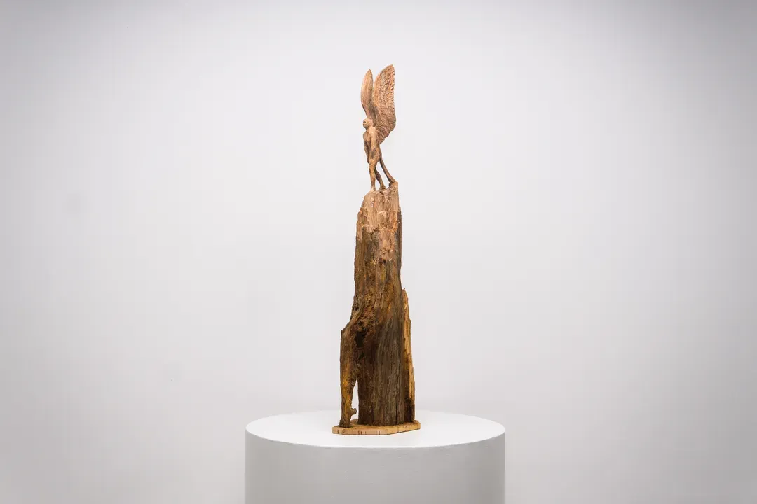 숲에서 수집한 자연목에 조각