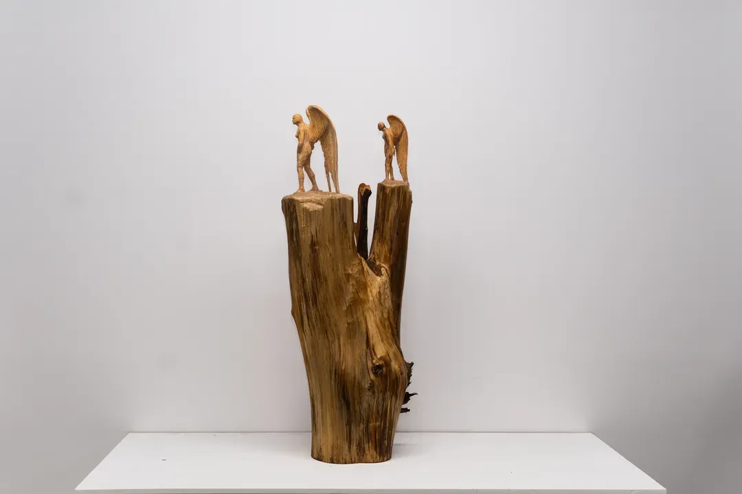 가로수 교체 공사 현장에서 수집한 자연목 파편에 조각
