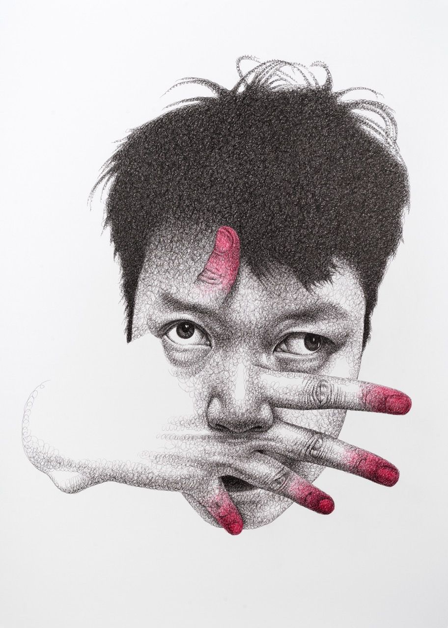 박승예는 펜과 아크릴 드로잉을 통해 괴물의 형상을 그린다. 그의 괴물은 단지 상상의 존재가 아니라, 개인과 집단이 만들어낸 불안, 폭력, 배제, 그리고 무감각한 묵인 속에서 형성되는 현실의 자화상이다. 작가는 사회 시스템 안에서 인간이 어떻게 괴물이 되어가는지를 추적하며, 과정을 시각적으로 기록한다.