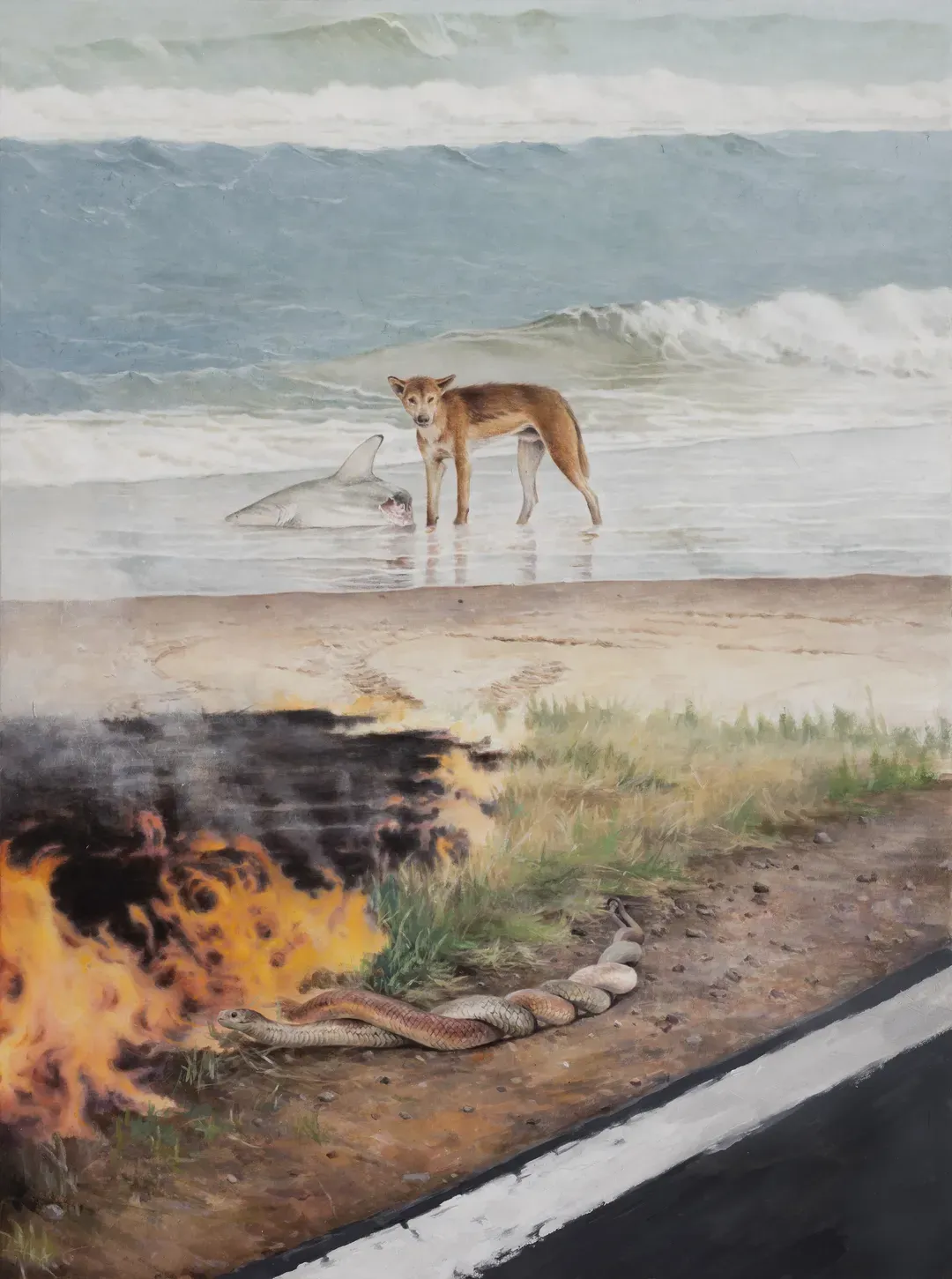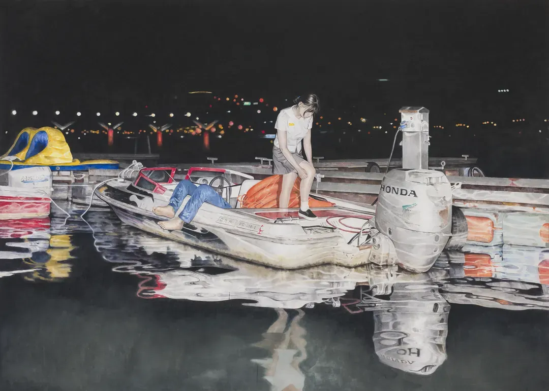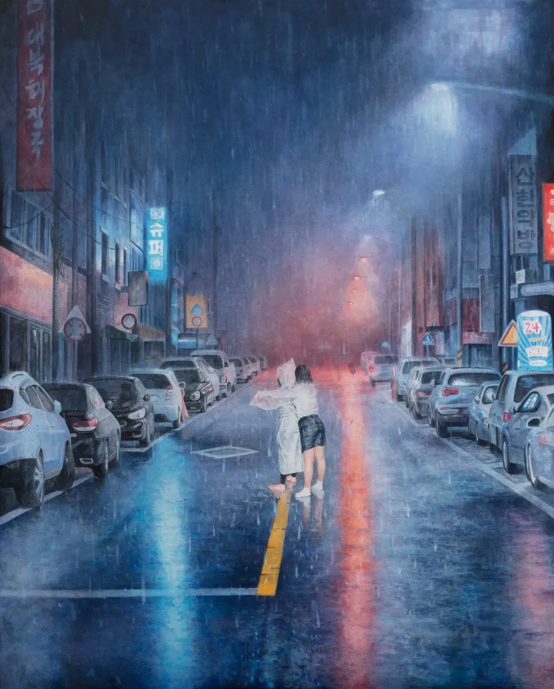 오세경은 절망의 외피를 두르고 사회와 개인의 갈등 속에서 허무와 희망을 함께 끌어안으며 끈질기게 삶의 미명을 더듬는다. <믿음의 선>(2019)은 허무로 점철된 사회와 그로부터 탈주할 가능성을 상징하는 붉은 터널과 중앙선을 주시하는 자화상으로, 불확실한 여명을 기다리는 개인의 고투를 담았다. 오세경의 작업은 사회 규범과 개인 합리 사이의 긴장을 은유와 비유로 풀어내며, 작은 개인의 시각으로 거대하고 복잡한 시대를 바라보는 가능성을 탐구한다.