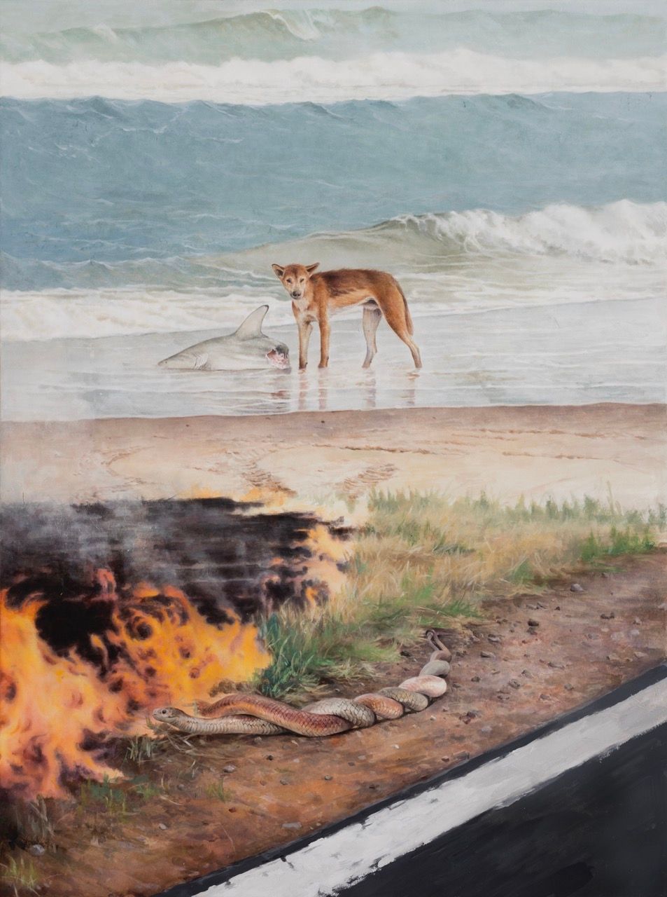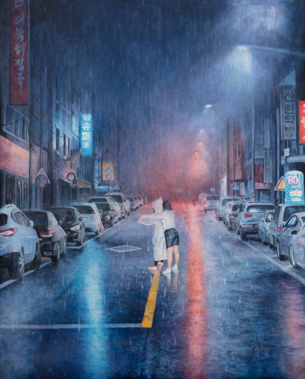 오세경은 절망의 외피를 두르고 사회와 개인의 갈등 속에서 허무와 희망을 함께 끌어안으며 끈질기게 삶의 미명을 더듬는다. <믿음의 >(2019) 허무로 점철된 사회와 그로부터 탈주할 가능성을 상징하는 붉은 터널과 중앙선을 주시하는 자화상으로, 불확실한 여명을 기다리는 개인의 고투를 담았다. 오세경의 작업은 사회 규범과 개인 합리 사이의 긴장을 은유와 비유로 풀어내며, 작은 개인의 시각으로 거대하고 복잡한 시대를 바라보는 가능성을 탐구한다.