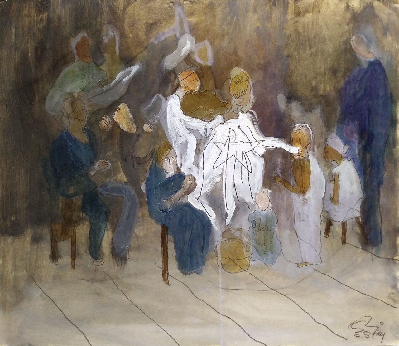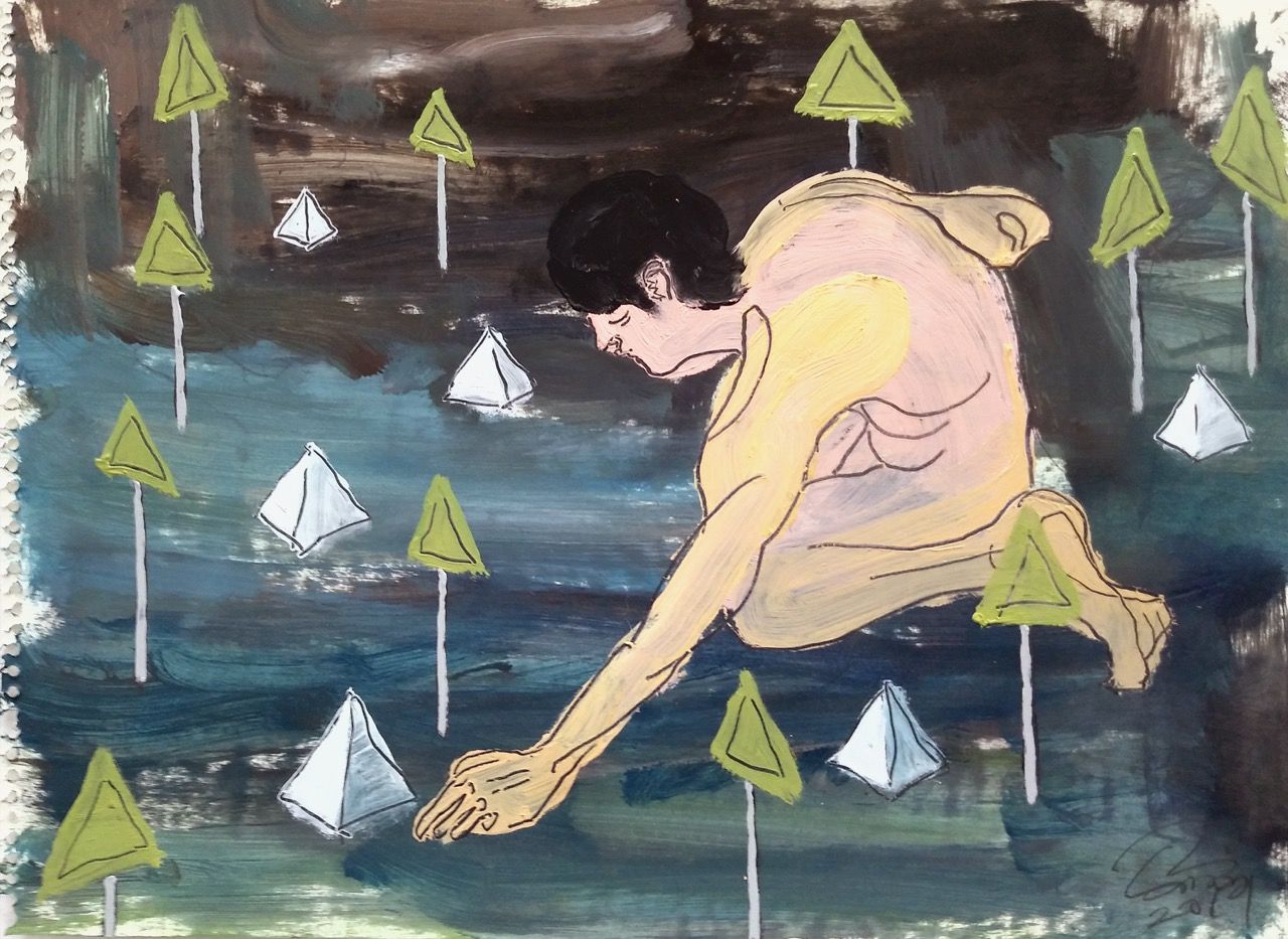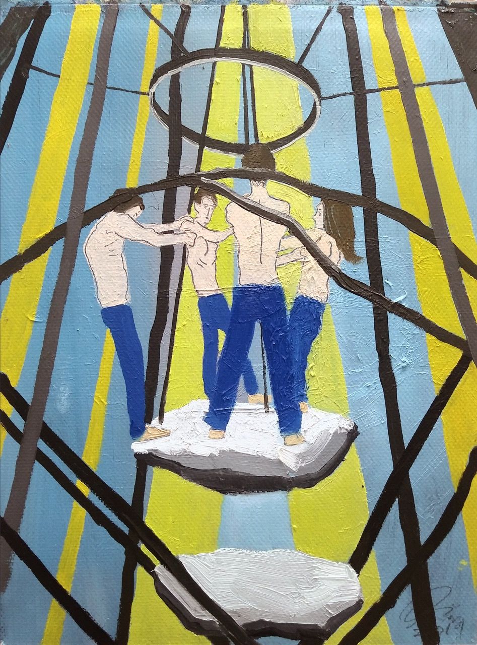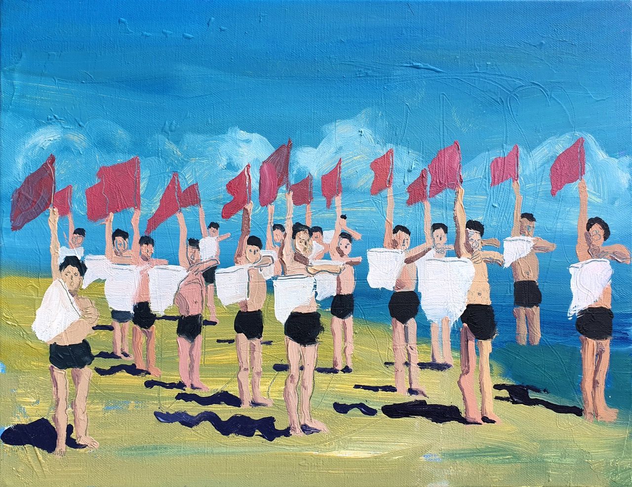 윤상윤의 작품은 실제 존재하지 않을 법한 이국적인 풍경과 낯익지만 낯선 인물들이 어우러진 기묘한 장면을 담아낸다. 그의 그림은 기억 빛바랜 사진처럼 아련하면서도 선명한 분위기를 띠며, 관객 내면 깊숙한 욕망과 없는 감정을 끄집어낸다. ‘드로잉이라는 표현처럼, 그의 작업은 무심하지만 진솔한 감정의 발산이자 인생의 고뇌를 담은 붉고 뜨거운 표현이다. 윤상윤의 작품은 솔직하면서도 절제된 감성으로, 관객에게 깊은 공명과 사색을 불러일으킨다.
