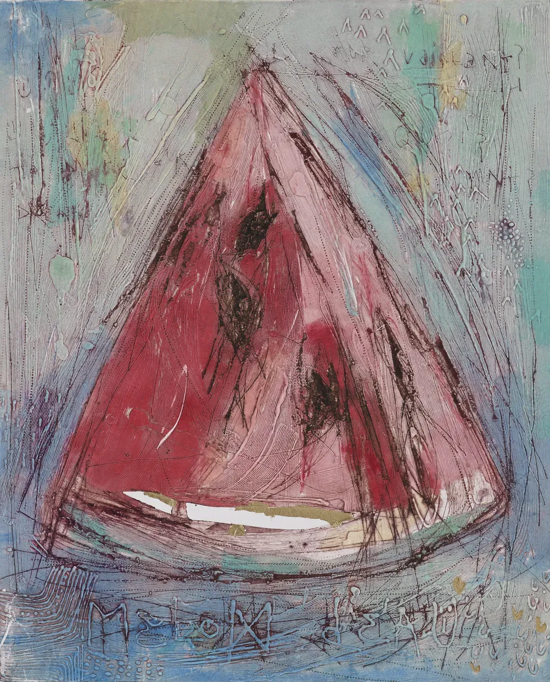oil pastel and crayon on canvas