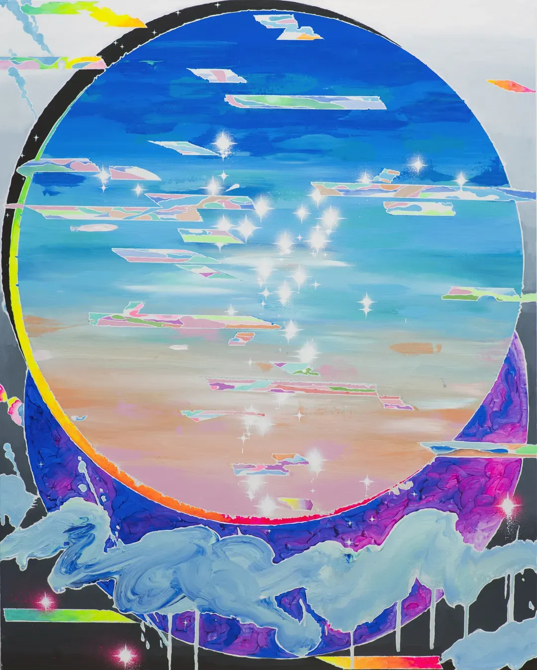 린넨 위에 유화와 아크릴릭, 형광안료