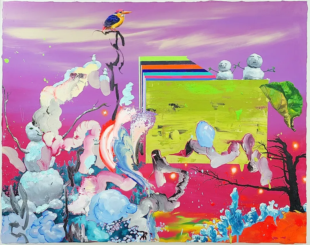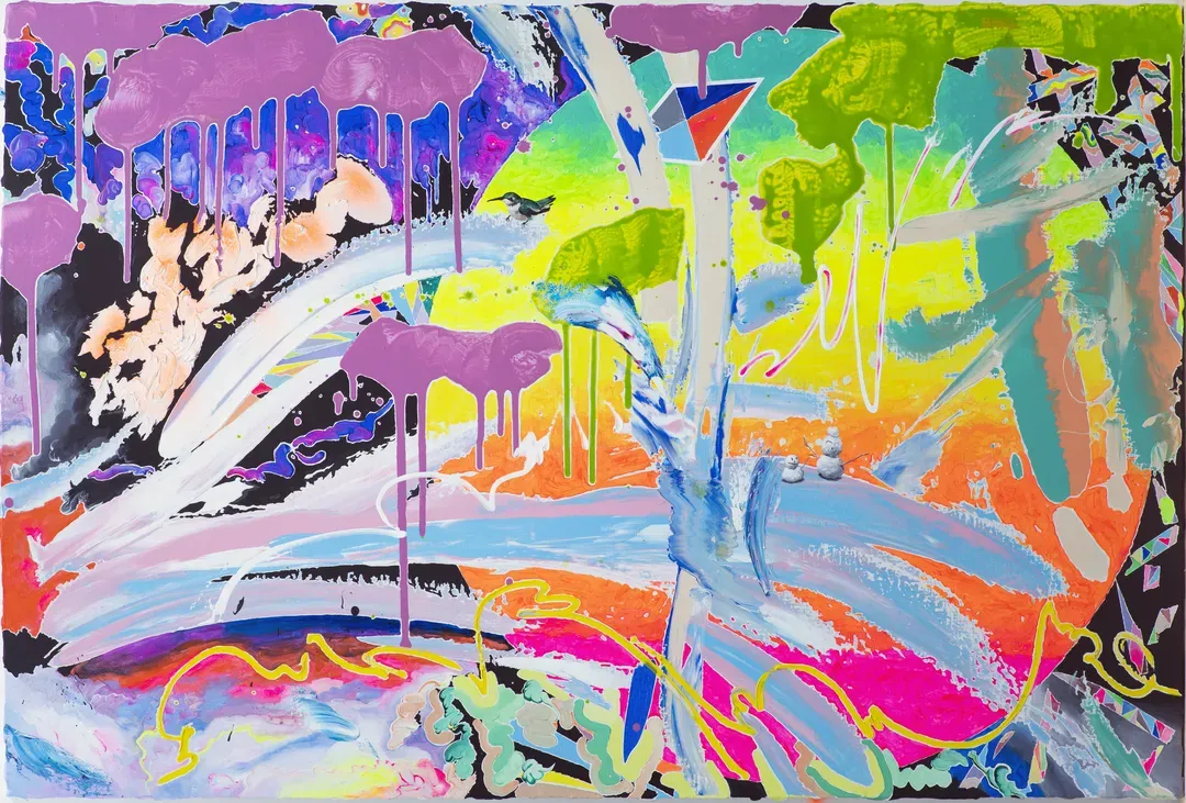 린넨 위에 아크릴과 오일, 형광안료