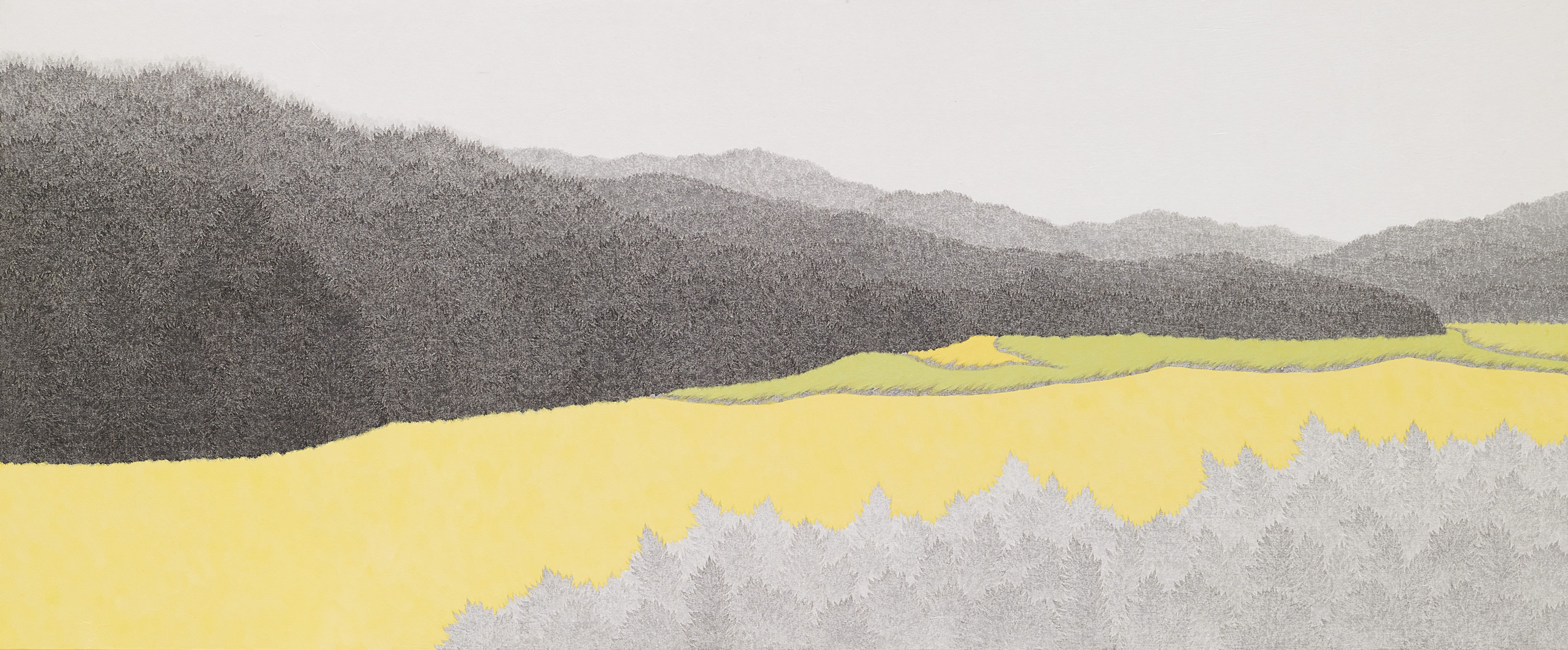 이한정은 일상에서 마주치는 자연 풍경의 표정을 수묵으로 담아낸다. 중국과 미국에서 거주했던 경험을 바탕으로 다양한 색감의 풍경 작업을 하였으며, 최근에는 주묵(붉은 먹)을 이용한 바위 시리즈로 변화를 시도하였다.