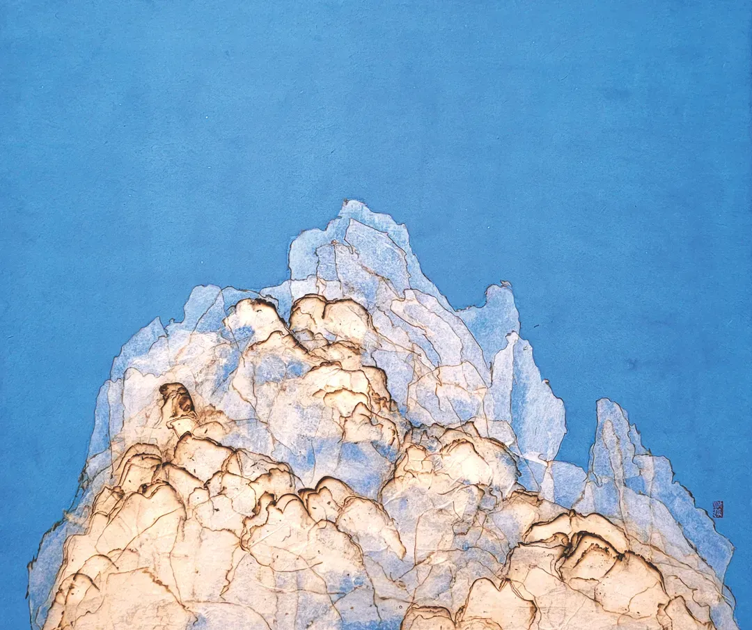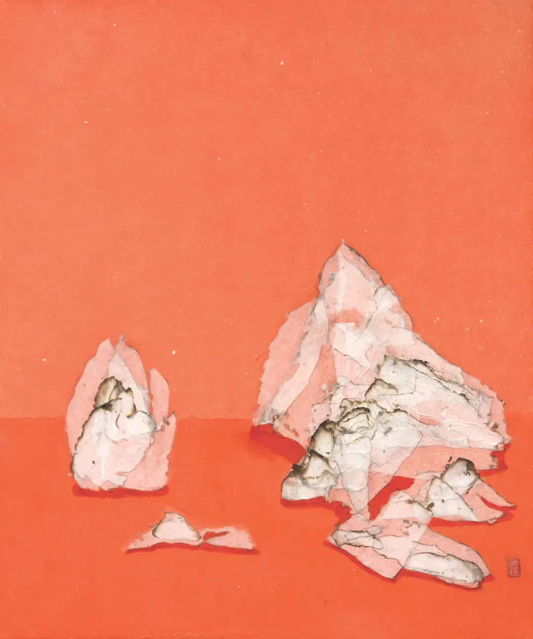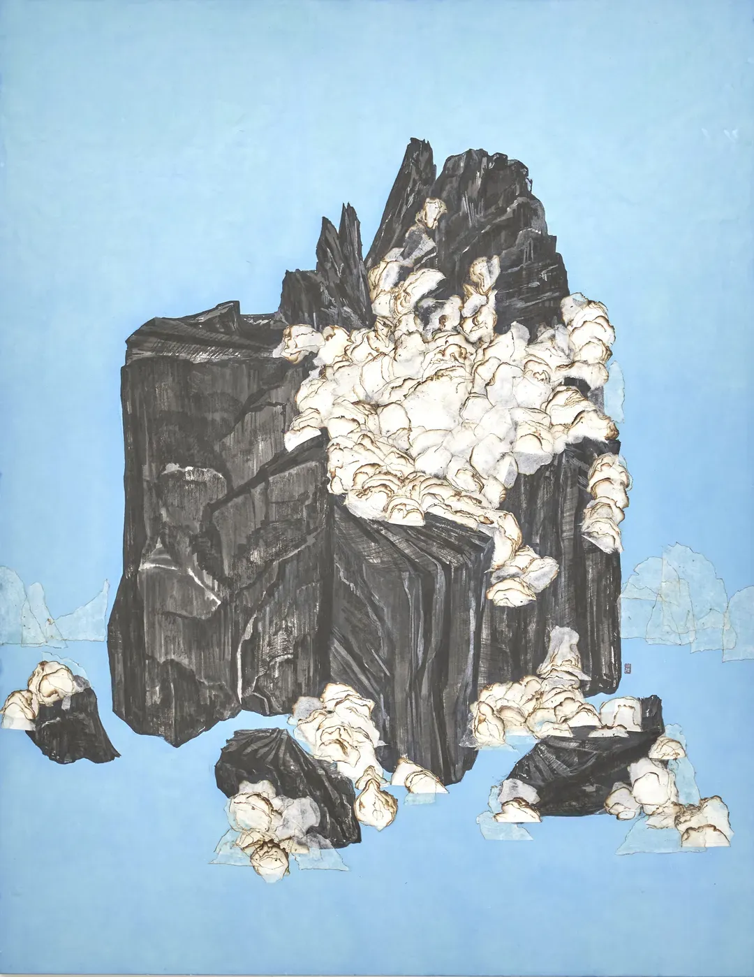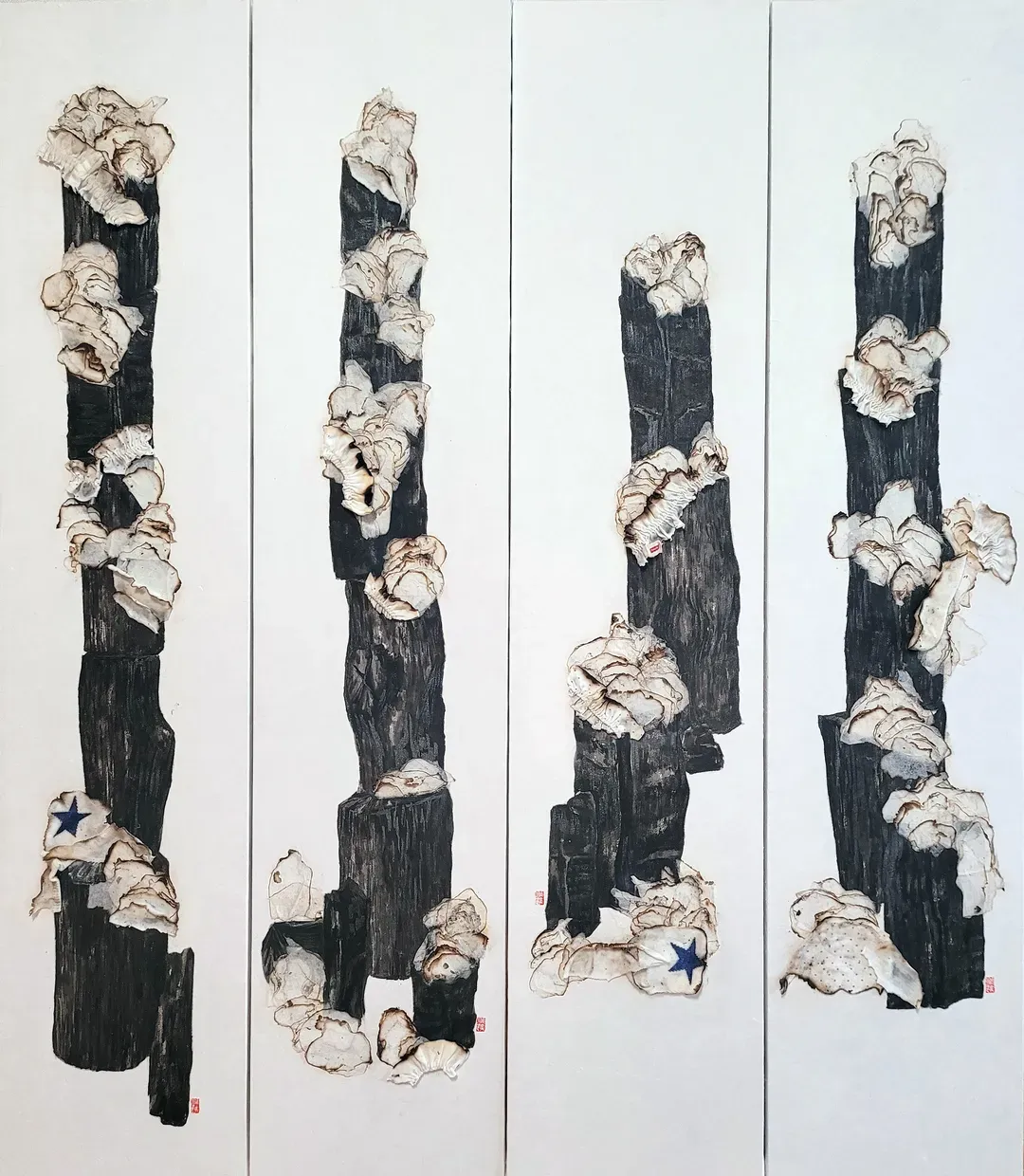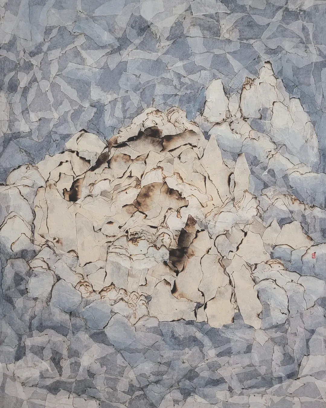 장지에 화선지 꼴라쥬, 먹, 채색, 은분, 향, 라이터