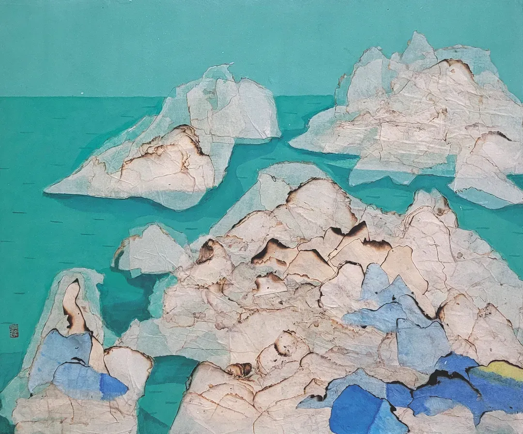 장지에 화선지 꼴라쥬채색, 향, 라이터