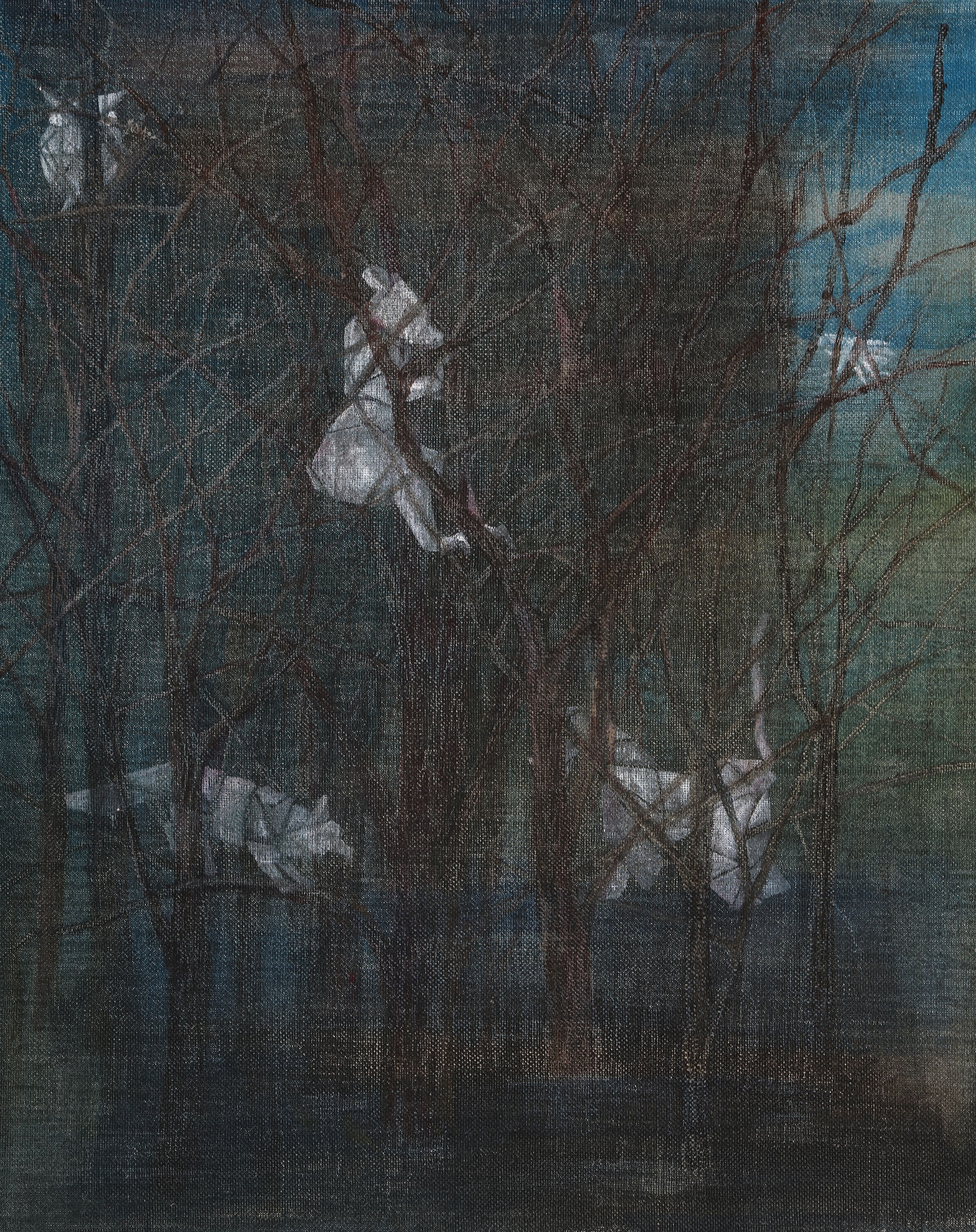 캔버스에 아크릴 채색, 먹, 스크래치