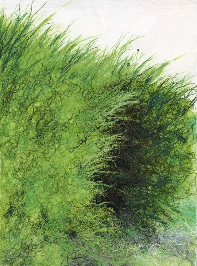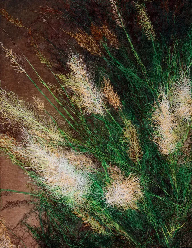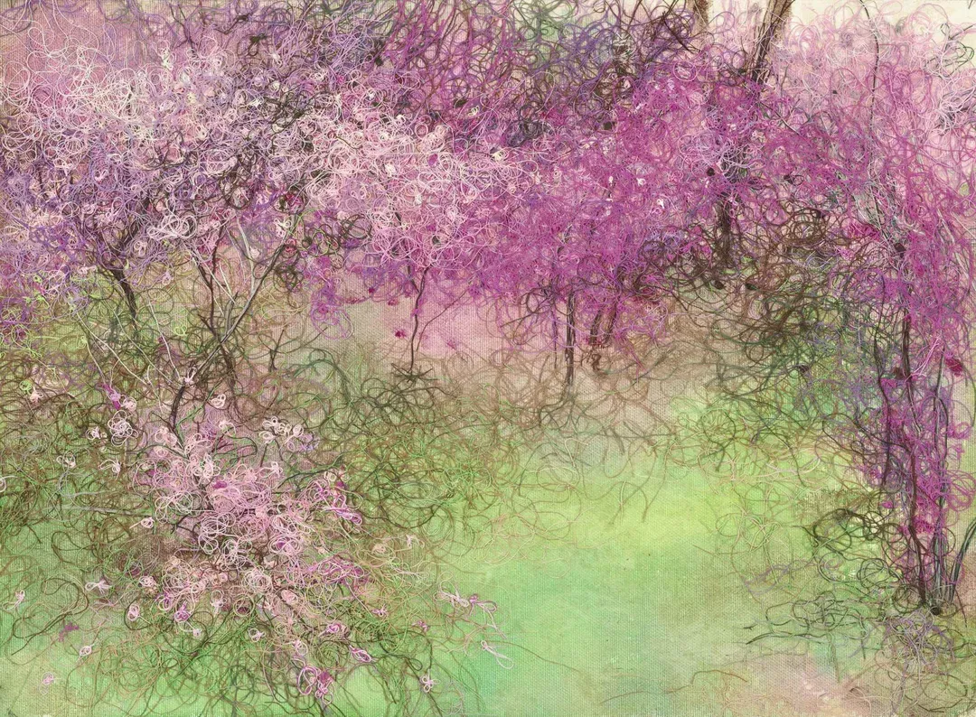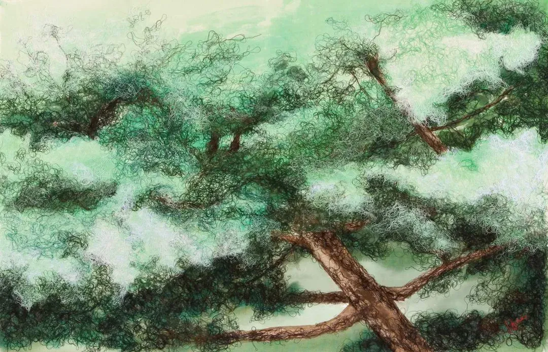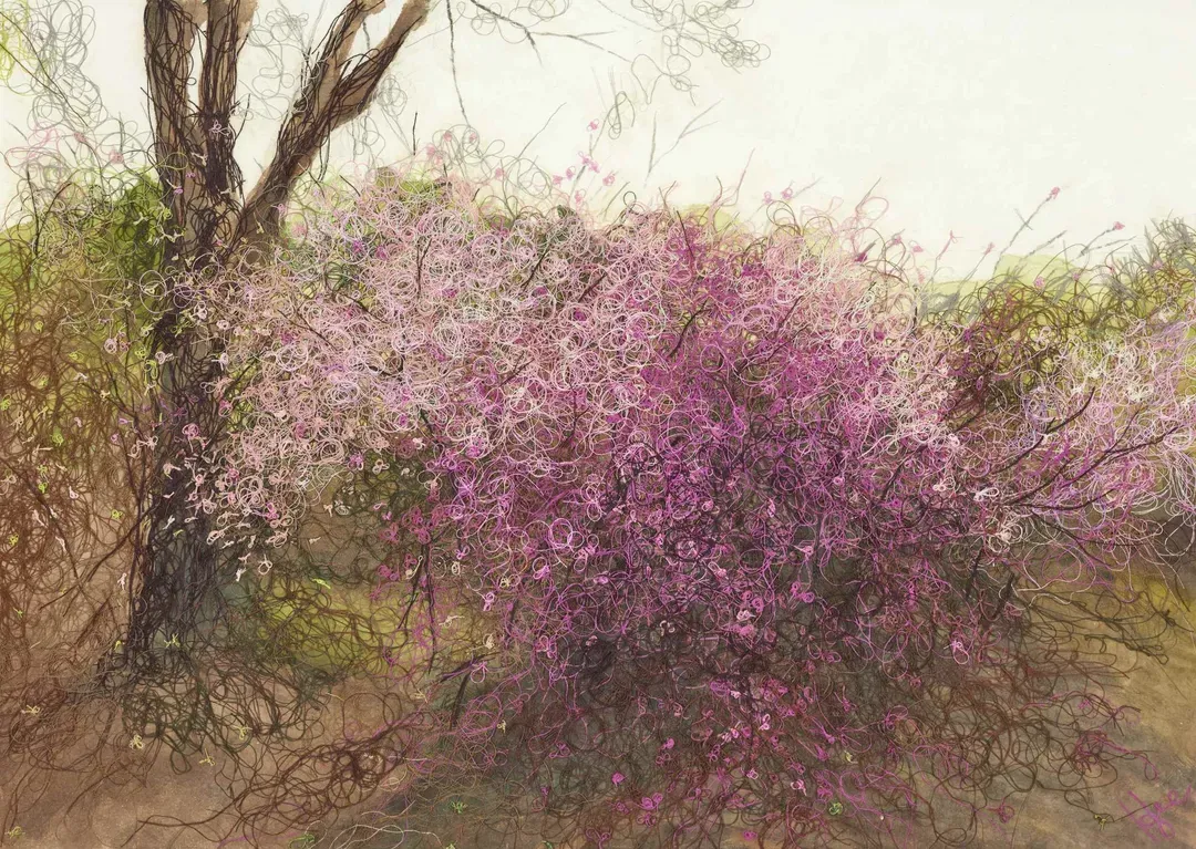 홍진희는 실을 재료로 작업하며, 물감으로는 표현할 수 없는 부드럽고 거친 질감, 미세하고 섬세한 양감을 작품에 담아낸다. 실을 쌓아올리는 반복적이고 인내가 필요한 과정을 통해, 치유와 생명 존중, 장수의 기원을 작품 세계에 녹여낸다. 그의 주요 모티프인 숲은 일상적이지만, 정신과 육체를 치유하는 장소로서, 관람자에게 따뜻함과 위로를 전한다. 실의 다양한 형태 변화와 색감은 동양적 미감과 함께 감동을 선사한다.